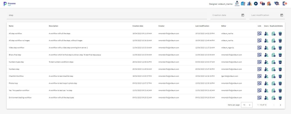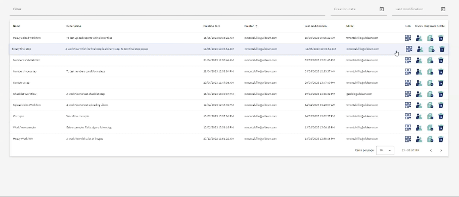 - Last Modification Date Range Input: Additionally, there is another date range input that enables users to filter workflows based on the date of their last modification.